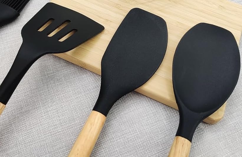 - مواد عالية الجودة: مصنوعة برؤوس من السيليكون لمقاومة الحرارة ومقابض خشبية لراحة اليد.