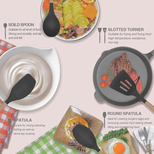 - مواد عالية الجودة: مصنوعة برؤوس من السيليكون لمقاومة الحرارة ومقابض خشبية لراحة اليد.