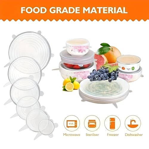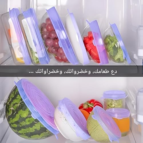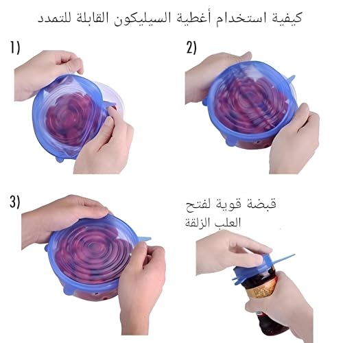 - أغطية سيليكون قابلة للتمدد تغلق بإحكام للحفاظ على الطعام طازجًا عن طريق حبس الهواء والحفاظ على النكهات وتقليل النفايات.