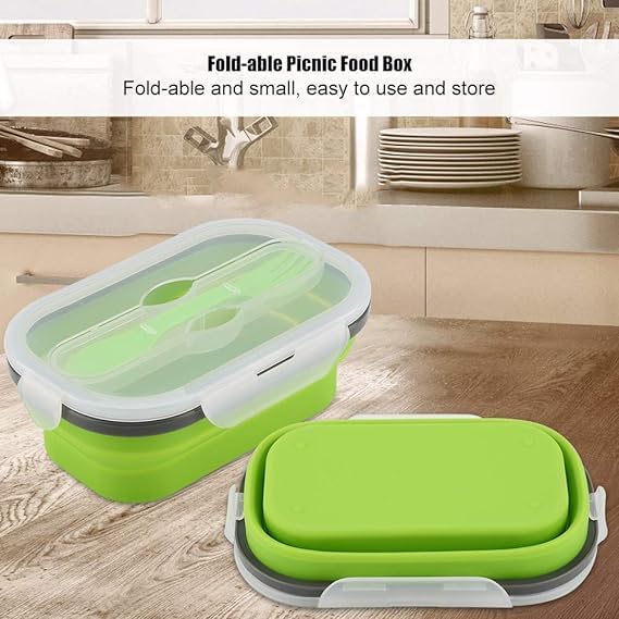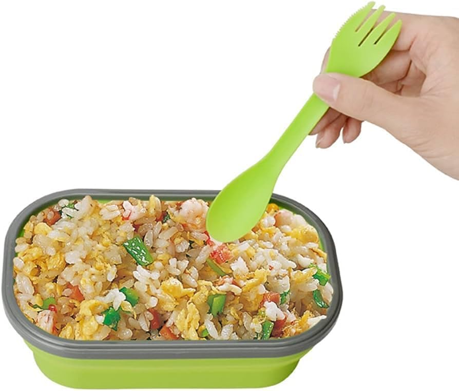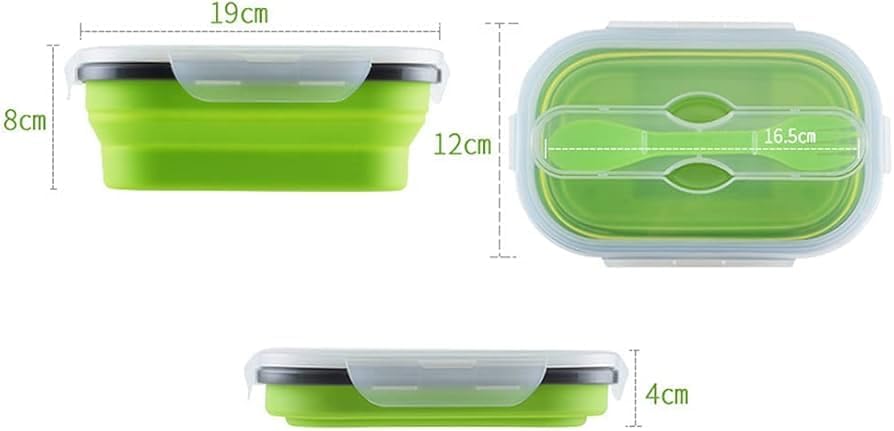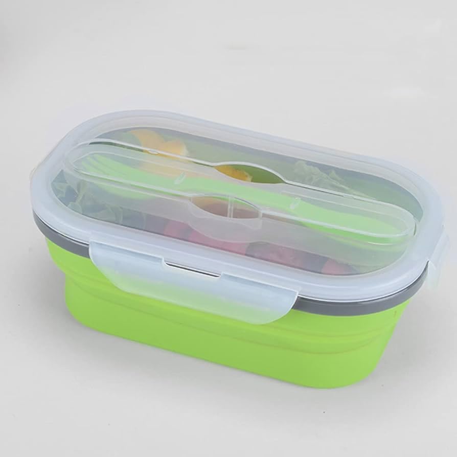 Spaceshoop - لانش بوكس سيليكون قابل للطي، مناسب للنزهات والمكتب والجيم، آمن للاستخدام في الميكروويف، سعة 800 مل (لون أخضر)