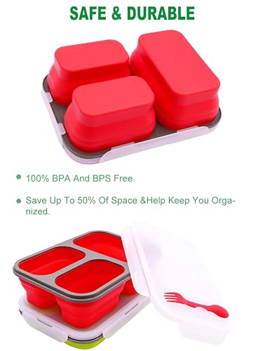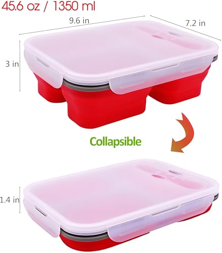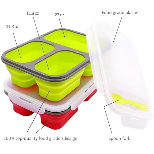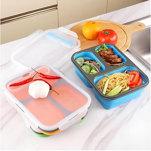 Generic - لانش بوكس غداء من السيليكون - استمتع بالراحة القصوى مع صناديق غداء كبيرة قابلة للطي من السيليكون مصممة للتخزين السهل وإعداد الوجبات، وتتميز بغطاء بلاستيكي مقسم لوجبات غداء منظمة.