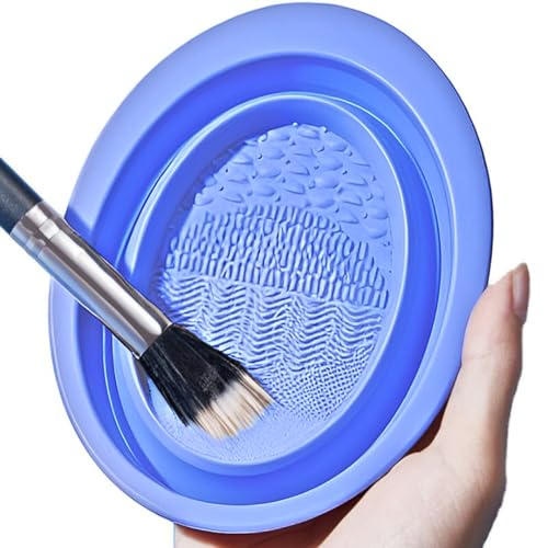 Generic - منظف فرش المكياج من السيليكون، وعاء قابل للطي لتنظيف البيض، بساط غسيل البودرة متعدد الوظائف، وسادة تنظيف فرش المكياج قابلة للغسل، قطعة فنية لتنظيف فرش المكياج مع قاعدة شفط لسهولة الاستخدام