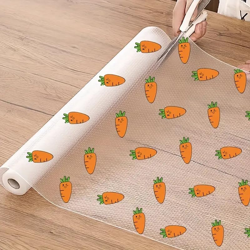 Generic - فرشة سيليكون لحماية أدراج المطبخ والتلاجة من الزيوت والرطوبة برسومات فواكه وخضروات مقاس 45×5 سم سهلة التنظيف ومتعددة الاستخدامات