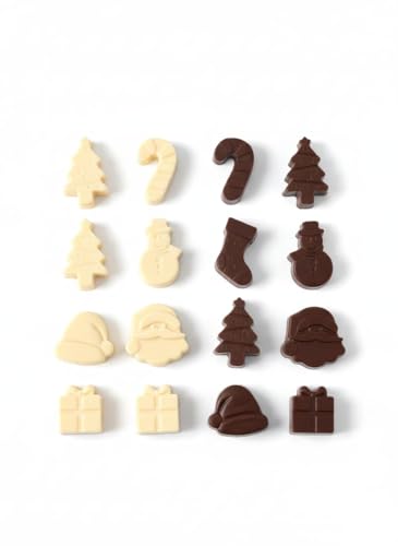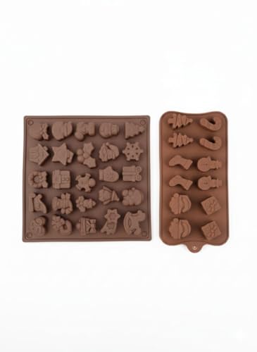 - مجموعة من قطعتين: تشمل قالبين من السيليكون بتصميمات أشكال الكريسماس المتنوعة لصنع الشوكولاتة والحلويات