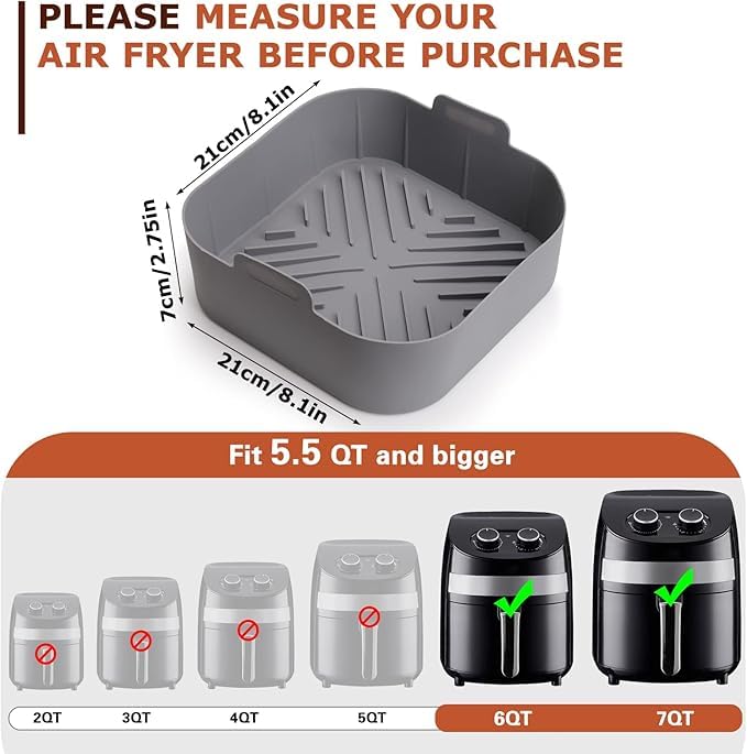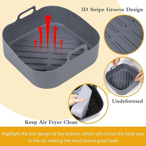 Generic - قالب سيليكون للمقلاة الهوائية الساخنة، قالب سيليكون رمادي للمقلاة الهوائية، قالب خبز للقلاية الهوائية الساخنة، مناسب للميكروويف