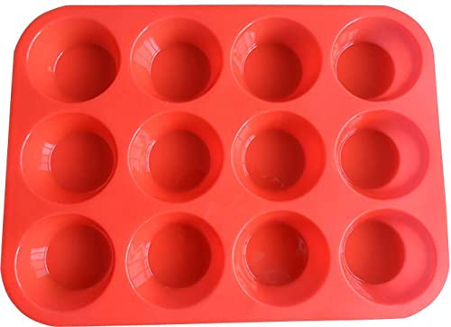 Generic - صينية مافن من السيليكون، اكواب خبز الكب كيك غير لاصقة، 12 كوب، قوالب سيليكون (احمر)