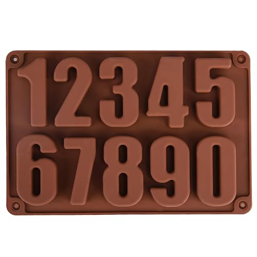 Generic - قالب أرقام من السيليكون - مثالي للتلوين والشوكولاتة والصابون والشموع والجيلي والثلج والسكر وتزيين البسكويت بتصميم مستطيل بني، سعة 2.5 كوب، طقم من قطعتين