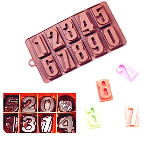 Other - قالب شوكولاتة على شكل ارقام من السيليكون، كوكيز بارد، ادوات كيك فوندان ثلاثية الابعاد على شكل رقمي، بني