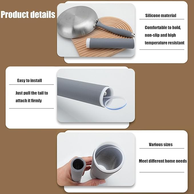 Generic - اغطية مقابض من السيليكون - اغطية مقبض مقاومة للحرارة وغير قابلة للانزلاق لمقالي الحديد الزهر والمقالي المعدنية واكسسوارات الطبخ للمطبخ، رمادي (قطعتان)