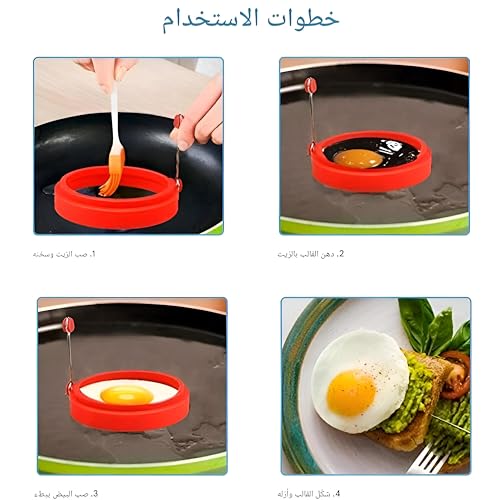 - تحتفظ مادة السيليكون بالحرارة بكفاءة، مما يضمن طهي البيض أو الفطائر بشكل مثالي في كل مرة، مع تعزيز المظهر البصري لأطباق الإفطار الخاصة بك بحواف أنيقة وموحدة.