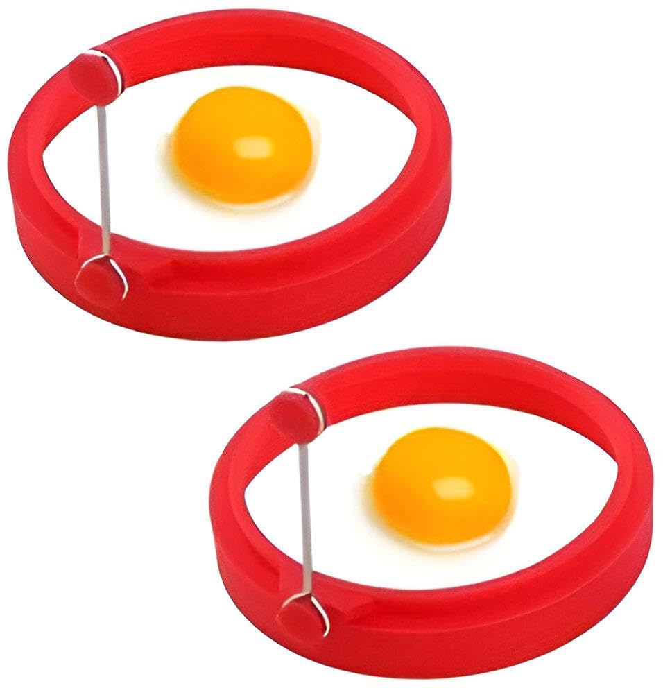 Generic - حلقة بان كيك من السيليكون - اصنع فطائر وبيض موحدة مع هذا القالب غير اللاصق والملون والمقاوم للحرارة والذي يتميز بمقبض امن (قطعتين)