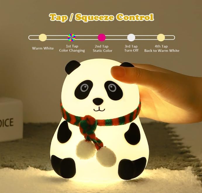 - إضاءة LED ليلية متغيرة بـ 7 ألوان: استمتع بالضوء الأبيض الدافئ ووضع تغيير اللون الديناميكي وخيارات الألوان الثابتة بنقرة بسيطة أو اضغط على سطح الباندا الرائع.