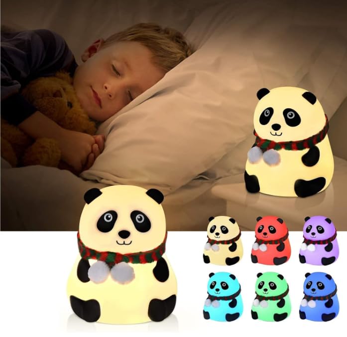 Siddham - مصباح ليلي بتصميم باندا من السيليكون للاطفال | مصباح LED متغير بـ7 الوان | قابل لاعادة الشحن | ديكور رائع للغرفة وهدية للاطفال الصغار والمراهقين وعيد الحب | ضوء ليلي ناعم خالي من BPA | متعدد الالوان
