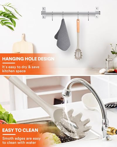 - منتج عملي متعدد الاستخدامات: تصميم مسنن يلتقط ويقدم المعكرونة بكفاءة، بينما يحمي الرأس السيليكوني الناعم أواني الطهي من الخدش.