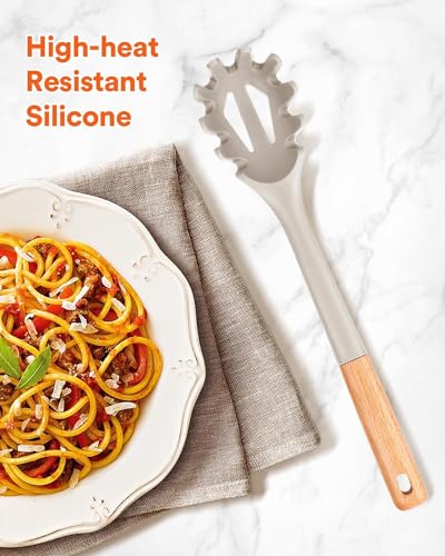 Generic - شوكة معكرونة سيليكون مقاومة للحرارة – ملعقة تقديم للباستا، خالية من مادة بيسفينول أ، مصفاة سباجيتي – 32.5 سم (كاكي)