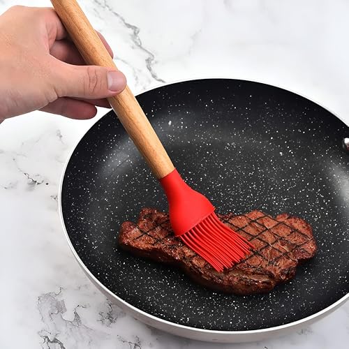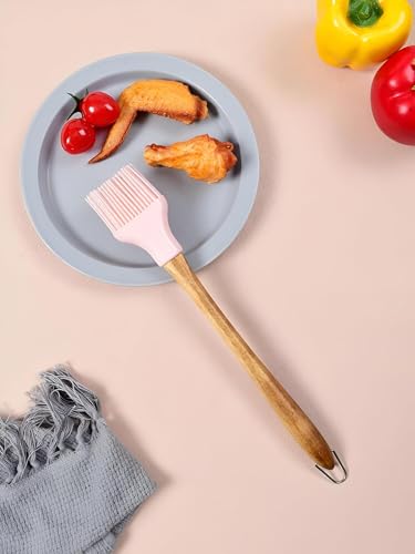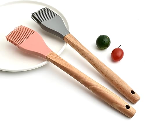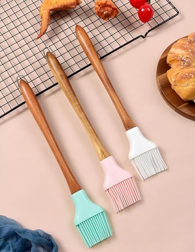 Generic - فرشاة المعجنات المصنوعة من السيليكون للاستخدام المنزلي، بمقبض خشبي دائري، فرشاة الشواء المنقسمة، فرشاة شحوم السيليكون للفطائر، مجموعة فرشاة الشواء لأدوات المطبخ للاستخدام المهني والمنزلي (3)