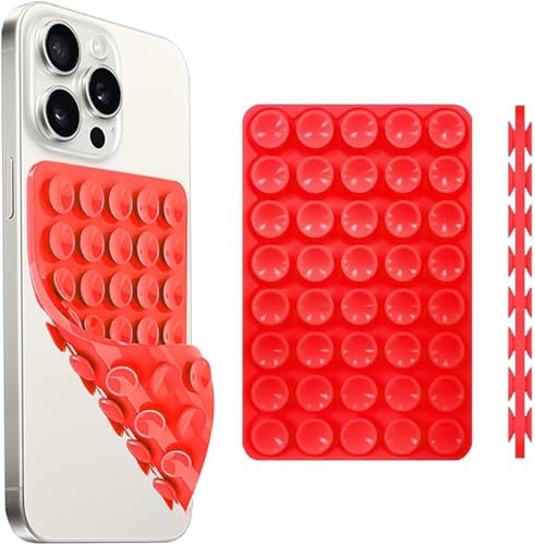 Generic - حامل هاتف من السيليكون بأكواب شفط مزدوجة الجوانب، حامل موبايل بدون استخدام اليدين متوافق مع iPhone وAndroid، قاعدة لاصقة قوية للمرايا والنوافذ، أحمر، قطعة واحدة