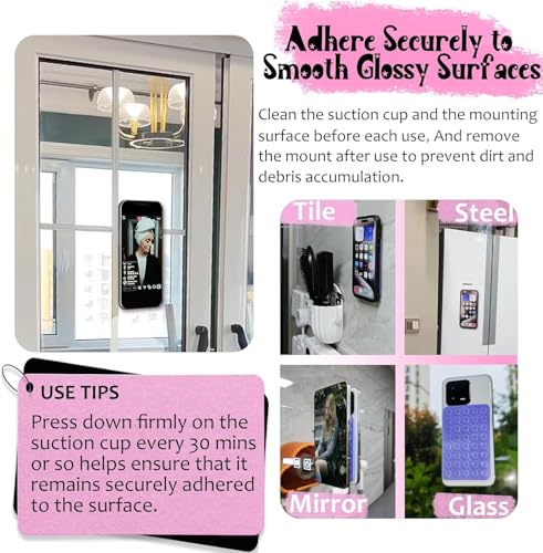 - تصميم مبتكر بأكواب شفط مزدوجة: يحتوي حامل الهاتف على 40 كوب شفط مستقل على كلا الجانبين مستوحى من التصاق الأخطبوط، مما يوفر قوة شفط قوية ومستقرة لتثبيت هاتفك بإحكام على المرايا والنوافذ والأسطح الملساء