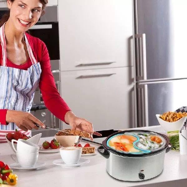 - قم بطهي طبقين في وقت واحد: قم بإعداد أطعمة مختلفة في وعاء واحد دون خلط النكهات أو الروائح. مثالي للعائلات التي لديها تفضيلات متنوعة للوجبات أو أولئك الذين يتبعون نظامًا غذائيًا محددًا - يوفر الوقت والمساحة والطاقة مع الحفاظ على وجبات الطعام منفصلة تمامًا.