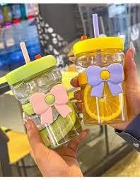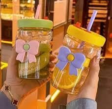 Generic - كوب من السيليكون بتصميم شريط - كوب زجاجي جمالي 550 مل يتميز بجدران مقاومة للحرارة وفيونكة سيليكون أنيقة مع غطاء وشفاطة مطابقة، مناسب لمحبي القهوة والعصائر المبدعين