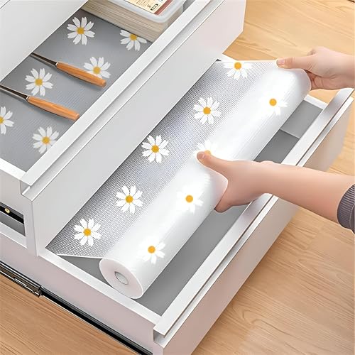 Generic - لفة سيليكون - لفة سيليكون بيضاء بتصميم دوار الشمس لادراج المطبخ او الخزائن، متينة وقابلة للغسل للحماية من الزيوت والبقع (مقاس 1 (45 سم × 150 سم))