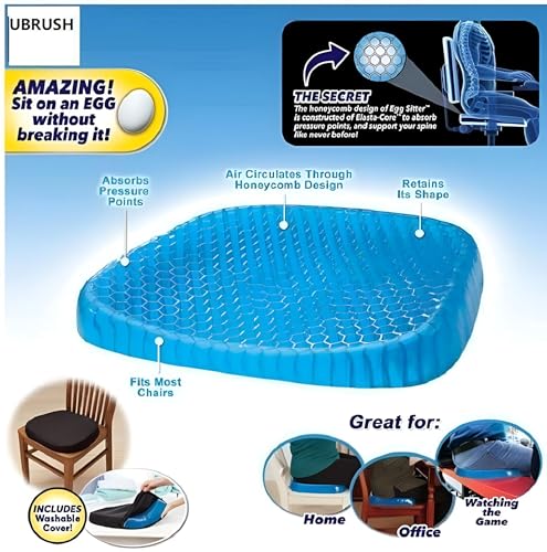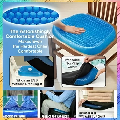 - تم تصميم تصميم الجل المريح على شكل قرص العسل لتوزيع وزن الجسم بالتساوي وتخفيف الضغط على عظمة الذنب والوركين وأسفل الظهر، مما يجعله مثاليًا للجلوس لفترات طويلة سواء في المكتب أو في السيارة أو في المنزل.
