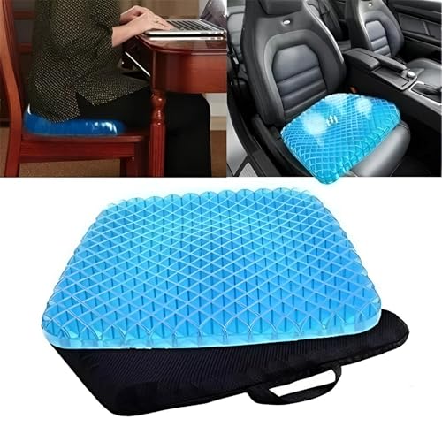 Generic - وسادة مقعد من السيليكون - تصميم مريح على شكل خلية النحل لتخفيف الام عظم الذنب، غطاء ازرق قابل للغسل، دعم طبي 35 × 40 × 3 سم