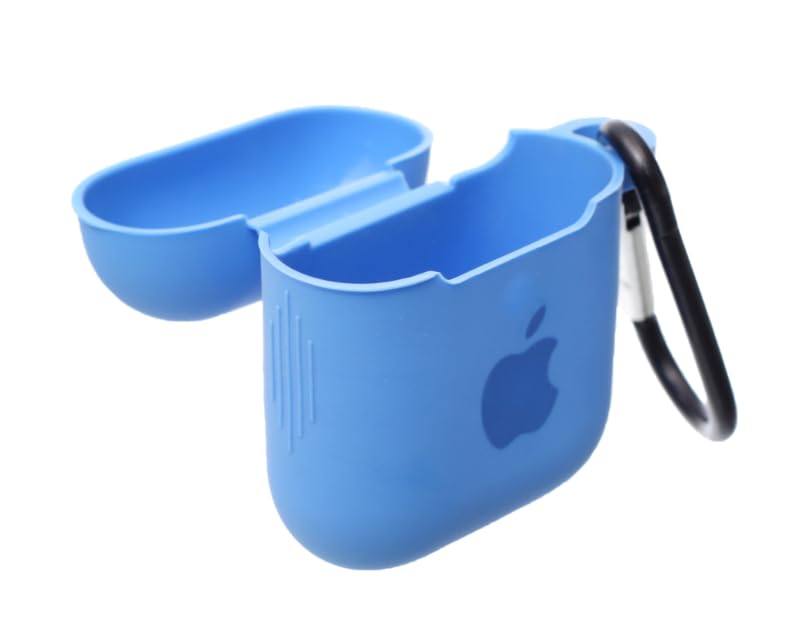 Generic - جراب حماية لسماعات الأذن اللاسلكية من السيليكون مضادة للصدمات مع حلقة تعليق، سهلة الفك ومقاومة للخدش، جراب للحماية الكاملة متوافق مع سماعات ايربودز 1، أزرق