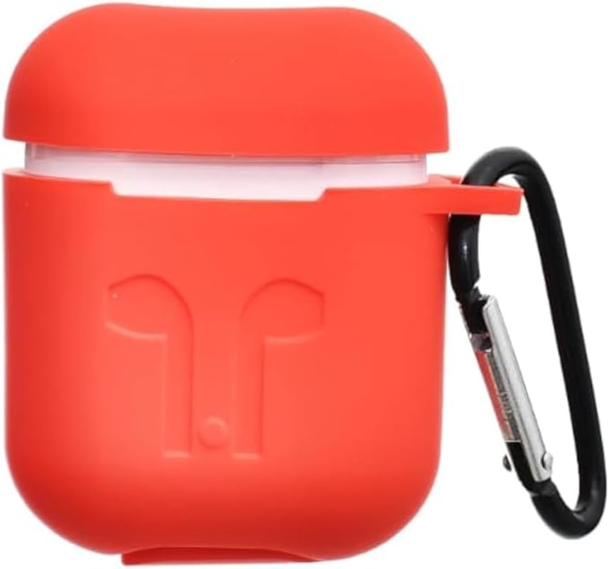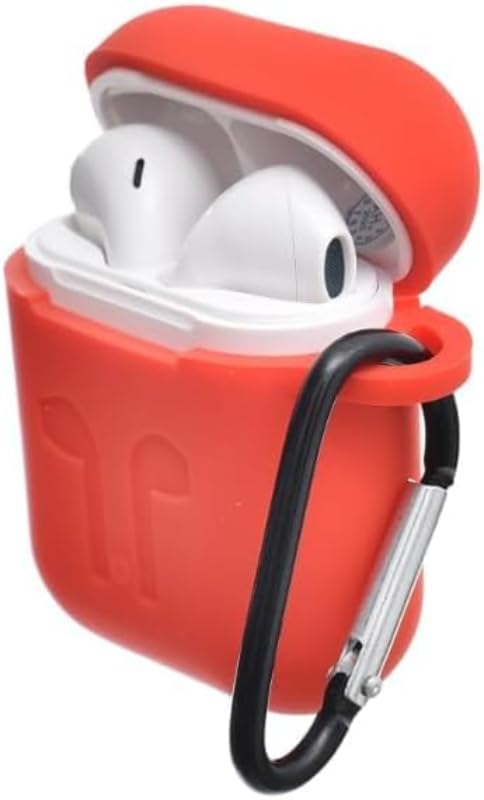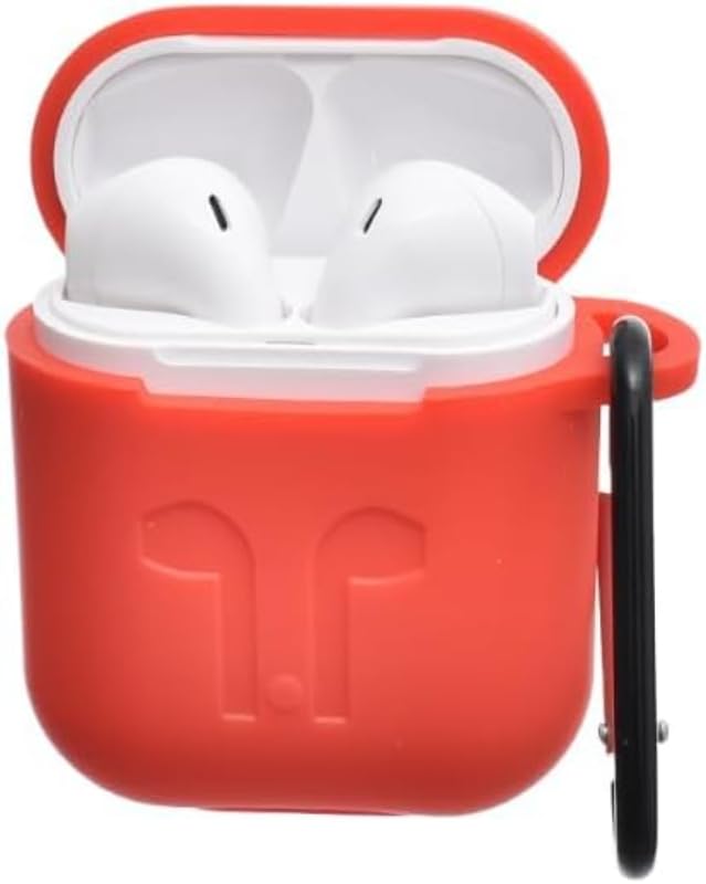 Generic - جراب حماية من السيليكون مع حلقة تثبيت لسماعات الأذن اللاسلكية مقاوم للصدمات وسهل الفك ومقاوم للخدش بحماية كاملة ومضاد للضياع متوافق مع سماعات ايربودز 1 - لون أحمر