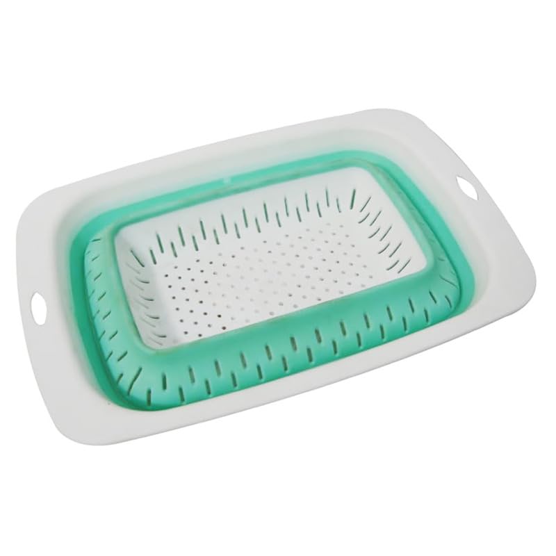- مصفاة حوض سيليكون قابلة للطي والتعديل، سلة تصريف طعام وسط ملونة، ابتكار فريد لراحة المطبخ لون ابيص فى اخضر - من رنا ستور