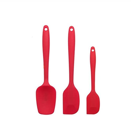 Generic - مجموعة ملاعق سباتولا من السيليكون مكونة من 3 قطع، ملاعق مسطحة مقاومة للحرارة، ملاعق مطاطية غير لاصقة (احمر) 09883315_ مع ضمان لمدة عامين للرضا والجودة