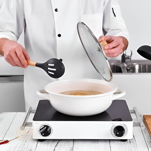 - 12 قطعة متنوعة للاستخدام اليومي، تتضمن المجموعة 12 قطعة أساسية لاحتياجات الطبخ اليومية مثل الملاعق والكاشطات والمضارب والملاعق مما يجعلها المجموعة المثالية لجميع أنواع الطهي.