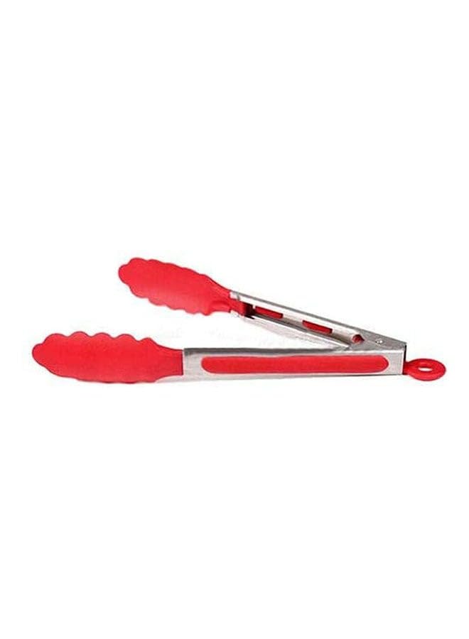 generic - ملقط طهي من السيليكون والستانلس ستيل للمطبخ، ادوات طعام للشواء والسلطة، احمر