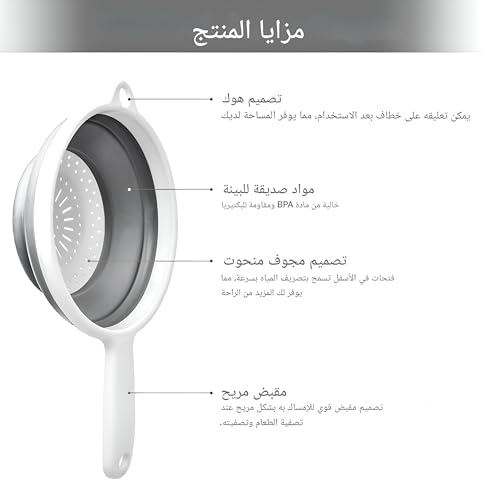 - تأتي مصافي السيليكون القابلة للطي بأحجام قطرها 7.87 بوصة ، مما يجعلها مثالية لتصفية مجموعة متنوعة من الأطعمة بما في ذلك الفواكه والخضروات والمعكرونة. يسمح تصميمها المتنوع بسهولة الاستخدام في الحوض أو فوقه ، بالإضافة إلى الوقوف الحر على طاولة أو طاولة ، مما يضمن أنه يمكنك استنزاف وشطف طعامك بكفاءة.