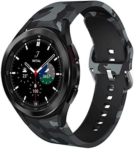 Generic - سوار من السيليكون المطبع للساعات الذكية متوافق مع ساعة سامسونج جالاكسي 4 كلاسيك 46 - 42 ملم 20 رمادي عسكري للجنسين - للبالغين