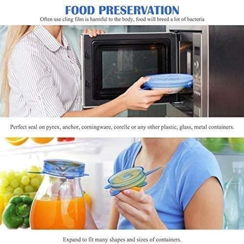 Spaceshoop - أغطية مطاطية من السيليكون، قابلة لإعادة الاستخدام مناسبة لعلب حفظ الطعام والأطباق والأطباق العميقة أغطية مقاومة للحرارة وقابلة للاستخدام في المايكروويف، 6 قطع، 21.59 × 19 × 4.8 سم، أزرق