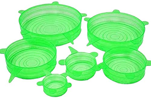 generic - غطاء طعام طازج من السيليكون قابل للتمدد، 6 عبوات باحجام مختلفة باللون الاخضر_ مع ضمان لمدة عامين للرضا والجودة