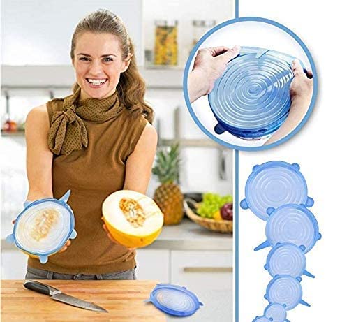 Other - اغطية مطاطية سيليكون، غطاء تخزين من السيليكون بمقاسات مختلفة للحفاظ على الطعام طازجًا، عبوة من 6 قطع - [ازرق]