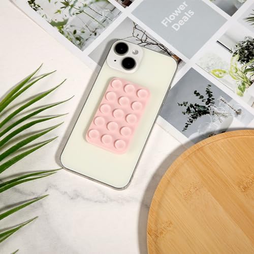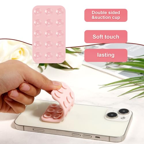 lasuroa - حامل موبايل بقاعدة لاصقة من السيليكون، حامل مزدوج الجوانب بمقبض لاصق للموبايل، جراب موبايل متعدد الأغراض يثبت بقاعدة لاصقة لمراية الاستحمام والسيارة لالتقاط صور السيلفي، وردي فاتح