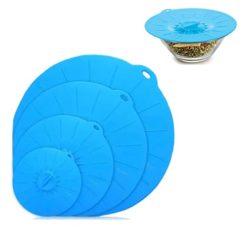 Silicotech - غطاء حراري من السيليكون للأطباق والأواني والأكواب - 4 مقاسات مختلفة - سيليكون حراري لتخزين الطعام (أزرق فاتح)
