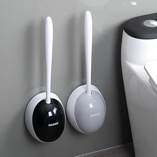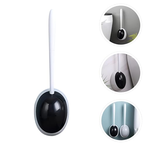 Generic - فرشاة تواليت من السيليكون - حامل يثبت على الحائط مع قاعدة دائرية لتنظيف الحمام الصحي السهل وحل التخزين الانيق (قطعتان اسود ورمادي)