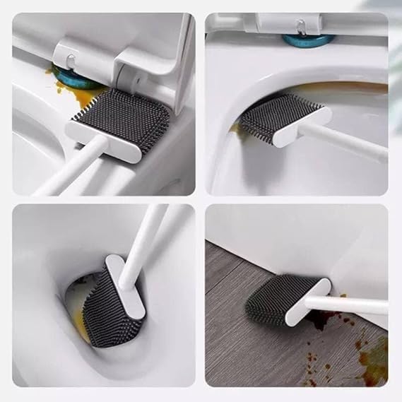 Spaceshoop - فرشاة تواليت من السيليكون مع حامل مريح يثبت على الحائط، بدون ثقب مسامير، سهلة التنظيف، فرشاة حوض تواليت بمقبض بلاستيكي طويل (لون أسود)