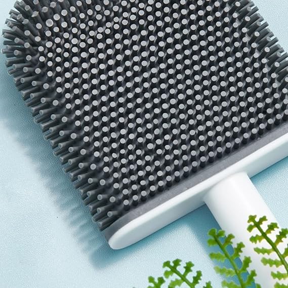 - فرشاة صغيرة الحجم مزودة بشعيرات سيليكون ولاصق قوي، تشغل مساحة صغيرة في الحمام، مثالية للمساحات الضيقة والتنظيم العملي.
