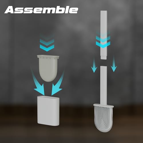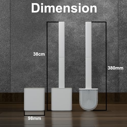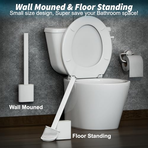 HygieX - فرش وحوامل مرحاض من السيليكون - عبوة من مقبضين طويلين غير قابلين للانزلاق، شعيرات مرنة لسهولة التنظيف - قاعدة حديثة خالية من التنقيط، مجموعة فرش مرحاض حمام بيضاء متينة مع حامل