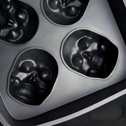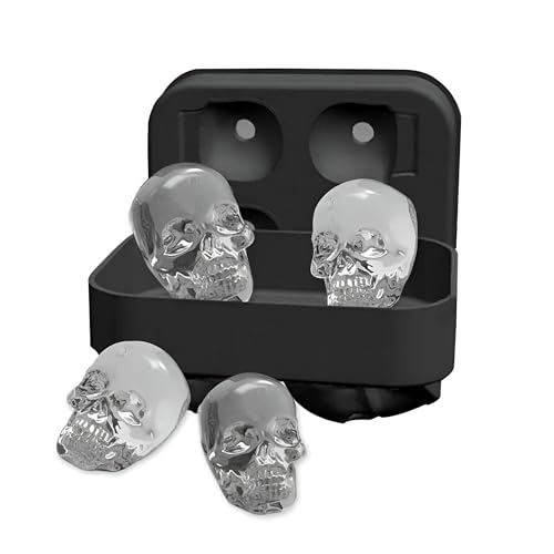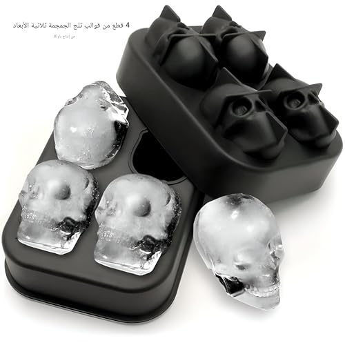 Generic - صينية سيليكون - قالب مكعبات ثلج ثلاثي الابعاد على شكل جمجمة خال من البيسفينول ايه مع غطاء، اصنع 4 اشكال جمجمة فريدة مثالية للمشروبات الباردة والكوكتيلات (عبوة واحدة)