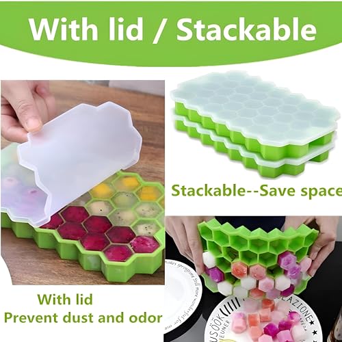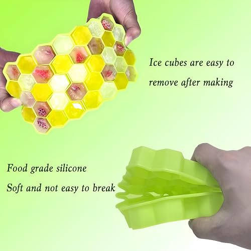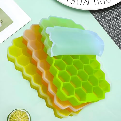 Generic - صواني سيليكون - صواني مكعبات ثلج فاخرة على شكل قرص العسل مع اغطية محكمة، تتميز بتصميم سهل التحرير، قابلة للتكديس وخالية من BPA وامنة للاستخدام في الميكروويف وغسالة الصحون (3)