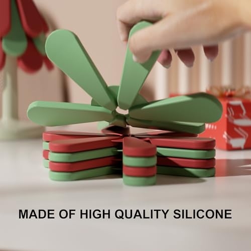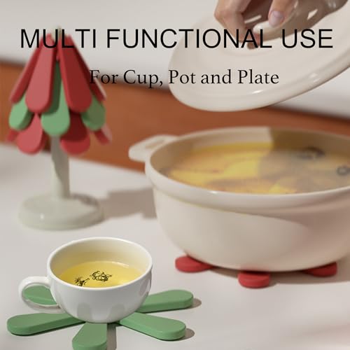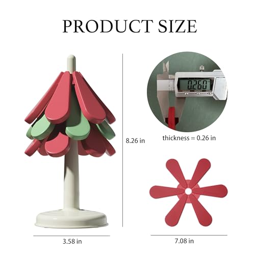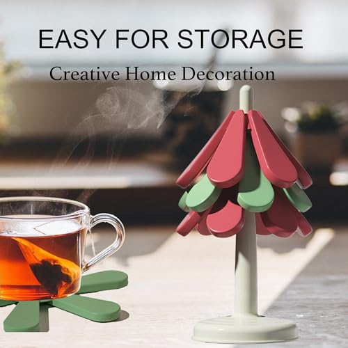 ILIKUHOME - حامل سيليكون للأطباق والأواني والمقالي الساخنة طقم من 3 قطع بتصميم شجرة مع حامل مخصص، يستخدم كقاعدة للأواني الساخنة للمطبخ وقاعدة أكواب، ويضفي لمسة أنيقة على ديكور المنزل