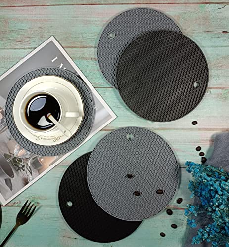 - قواعد سيليكون مثالية - عبوة من 4 قواعد سيليكون دائرية، بساط مطبخ مقاوم للحرارة للحلل والطاسات الساخنة، تجعل المطبخ آمنًا وممتعًا.