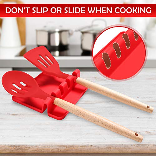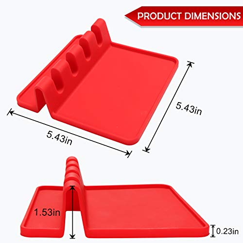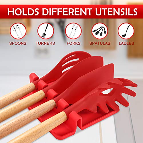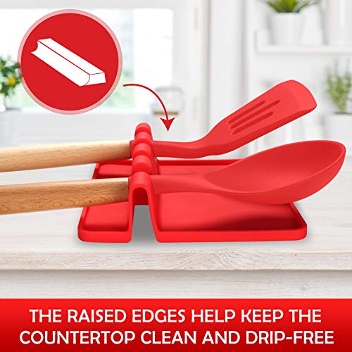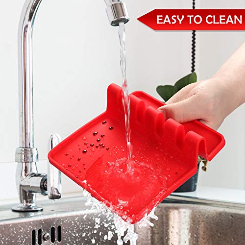 Sinnsally - مسند مائدة من السيليكون للأواني المتعددة مع وسادة تقطير، خالي من مادة بيسفينول أ مسند وحامل ملاعق لسطح الموقد، مقاوم للحرارة، حامل أدوات المطبخ للملاعق، المغارف، مساكة الطعام والكثير من سينسالي، أحمر