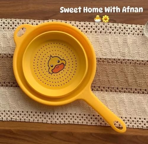 Generic - مصفاة خضار وبقوليات سيليكون بيد متينة، تصميم تركي مع رسم بطة، لون أصفر، لغسل وتصفية الطعام